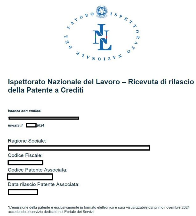 Come potete leggere, questa non è la patente effettiva, ma la richiesta di sua emissione, infatti la postilla in fondo dice “l’emissione della patente è esclusivamente in formato elettronico e sarà visualizzabile dal primo novembre 2024 accedendo al servizio dedicato nel Portale dei Servizi”