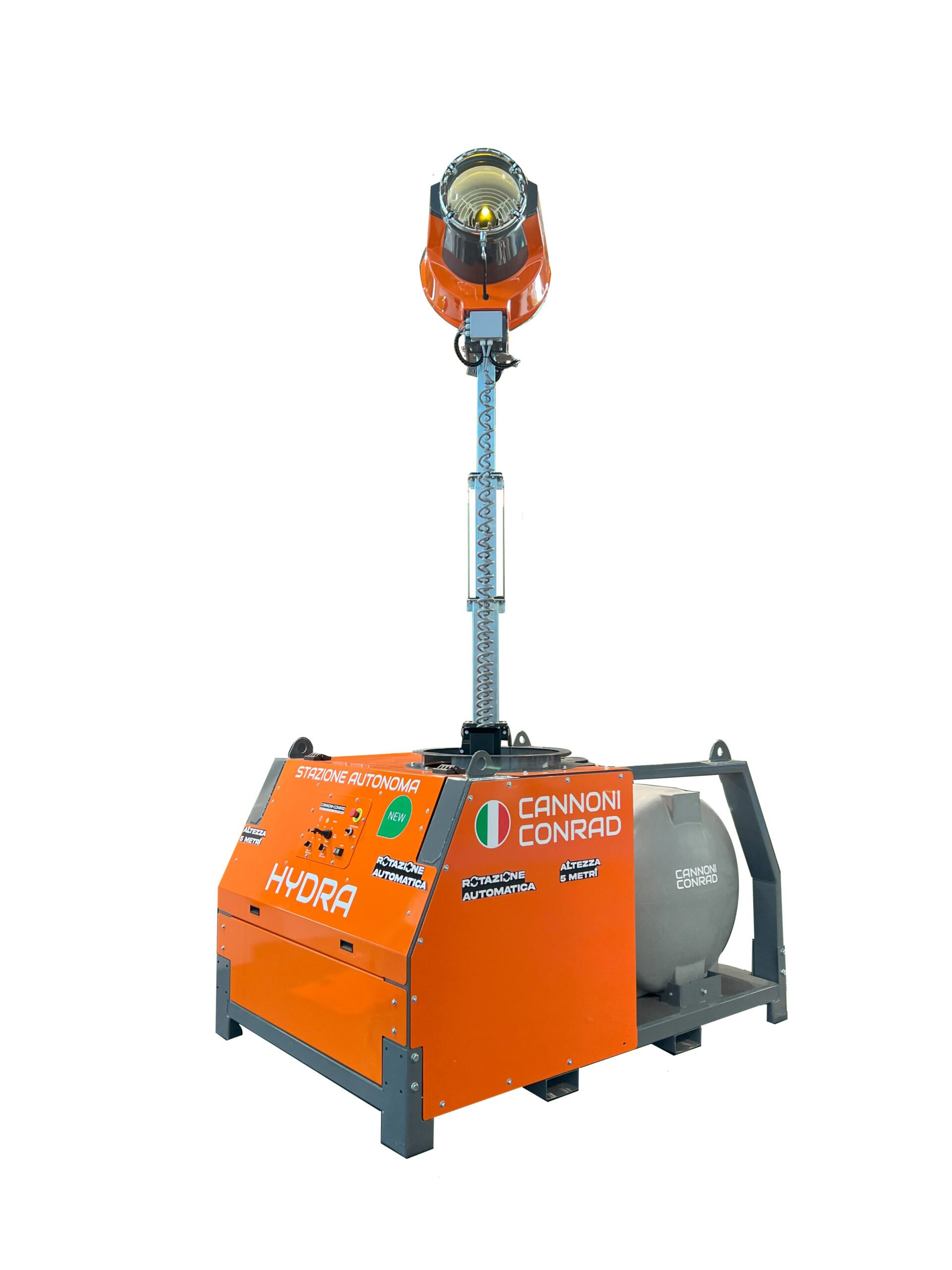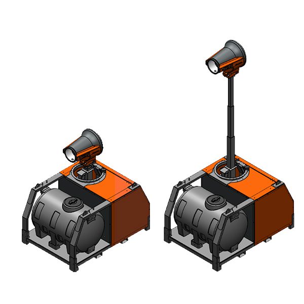 Ecco la nuova stazione autonoma di abbattimento polveri per avere tutto l’occorrente sul tuo cantiere con una sola mossa, cannone nebulizzatore con acqua e energia energia elettrica su un unico skid inforcabile o sollevabile con ganci.