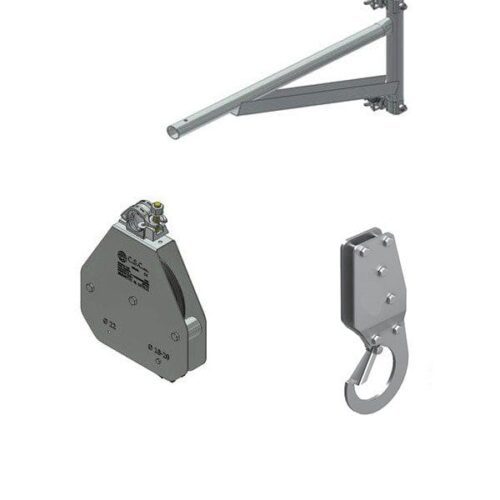 La struttura compatta (415mm lunghezza, 210mm larghezza, 310mm altezza) e la massa contenuta di 23kg rendono questo argano a bandiera pratico da installare e maneggiare in cantiere. Il sistema include pulsantiera diretta con arresto d’urgenza e fine corsa di emergenza in salita per garantire la massima sicurezza durante le operazioni. L’elevatore è equipaggiato con fune in acciaio antigiro Ø4mm con carico di rottura 11KN e lunghezza18m, assicurando resistenza e stabilità anche nelle applicazioni più impegnative. Il rapporto di riduzione 1:21,84 e la velocità di rotazione 1400giri/min contribuiscono a un funzionamento fluido ed efficiente.
