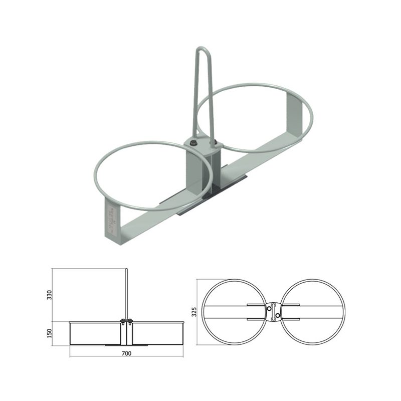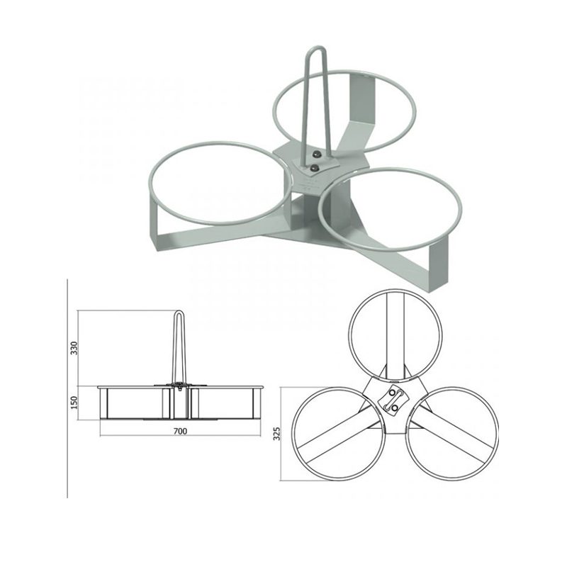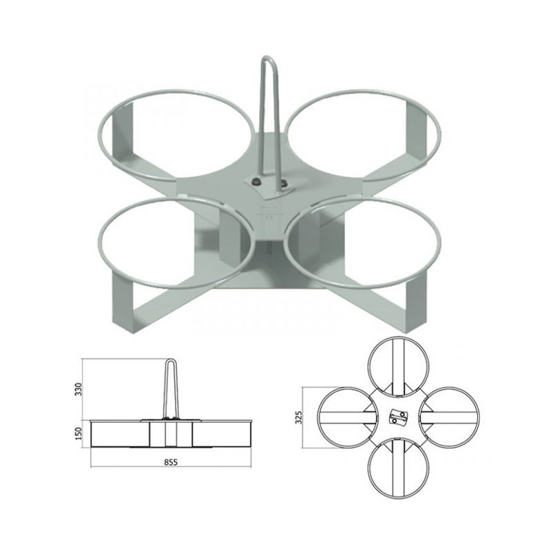 Ogni postazione ha una portata 35kg, con diametro interno 30,5cm e diametro esterno 32,5cm, compatibile con i principali secchi edili in commercio.
