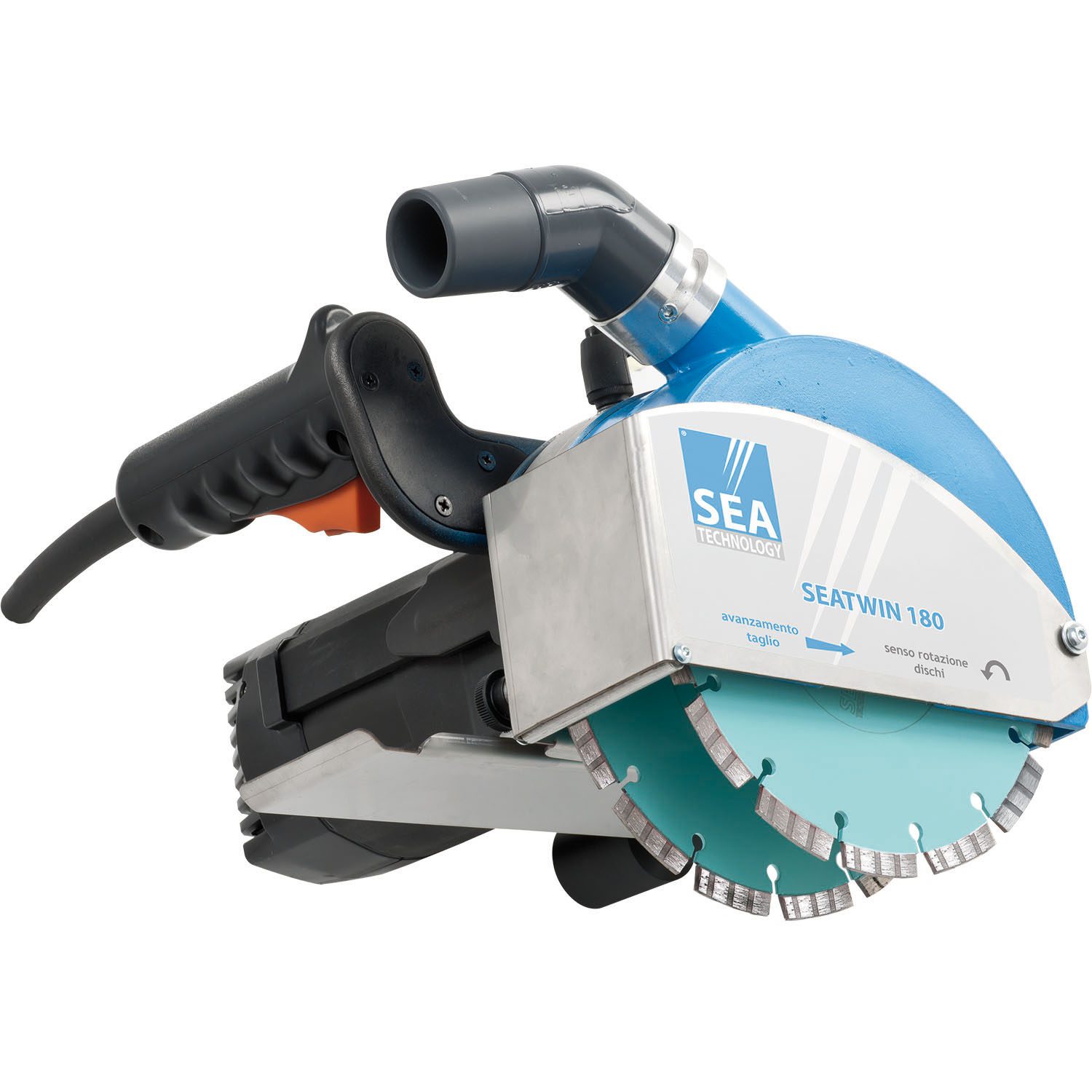 Il SEATWIN 180 permette di realizzare scanalature con profondità regolabile da 30mm a 60mm e larghezza da 20mm a 60mm, offrendo grande versatilità nelle diverse applicazioni di cantiere. La macchina utilizza dischi diamantati Ø180mm con foro 22,2mm, ideali per garantire tagli precisi e lunga durata anche su materiali resistenti. La velocità a vuoto di 4900giri/min assicura prestazioni costanti e una lavorazione efficiente.