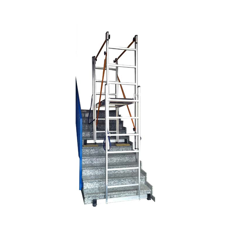 È costruito in leggerissimo profilo di alluminio (mm 75x25x1,5) con traverse e parapetti in acciaio verniciato con polveri epossidiche. Pochi componenti lo rendono leggero, poco ingombrante da trasportare e facile da montare in pochi minuti e senza bisogno di attrezzi.