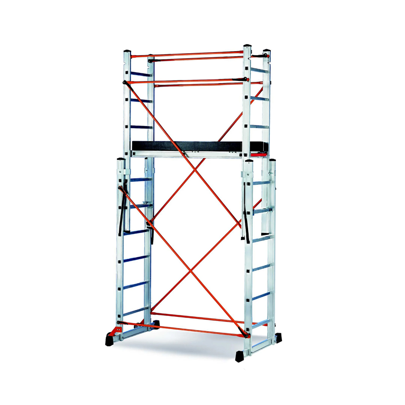 Dragon è un Trabattello costituito da una geniale combinazione tra 2 scale trasformabili e una serie di traverse che rendono la struttura rigida e stabile. Può essere usato a diverse altezze ed ogni componente è utilizzabile a sé.