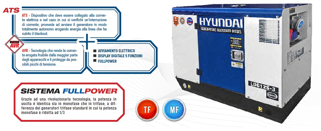 Caratteristiche principali di Generatore Diesel Hyundai 65238 – 11 kW Full Power
