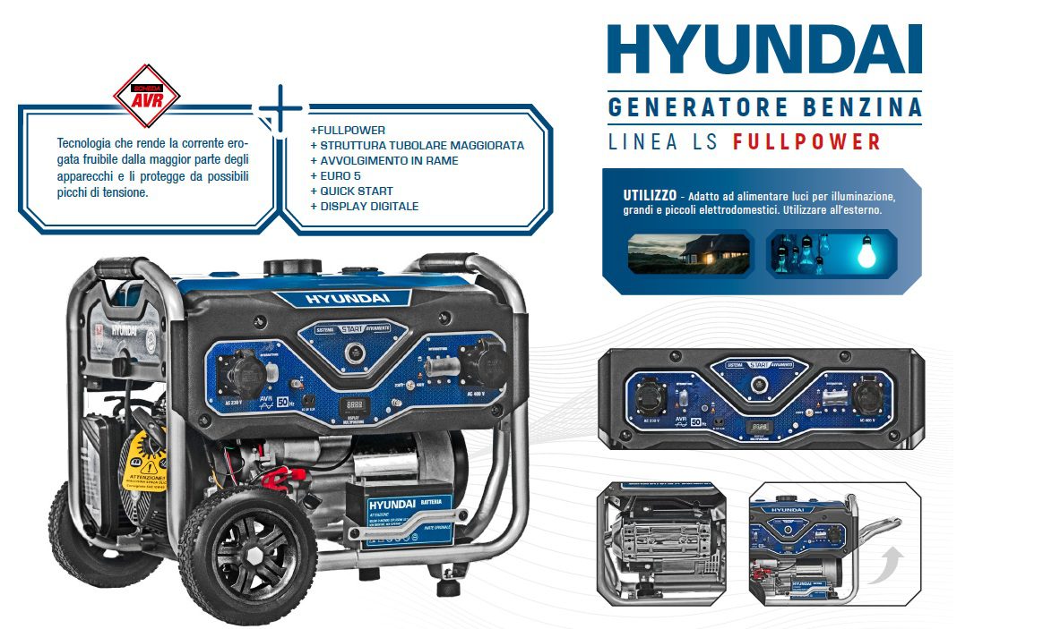 Punti di forza del Generatore Hyundai Benzina LS Fullpower Mono-Trifase 6 kW– Cod. 65006