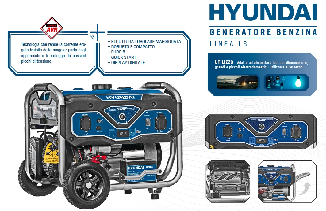 Punti di forza del Generatore Hyundai Benzina LS Monofase 6,0 kW – Cod. 65003
