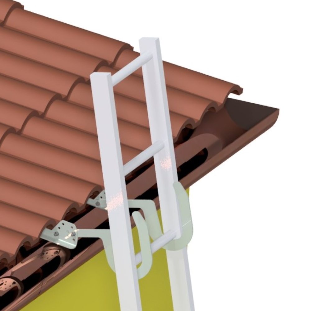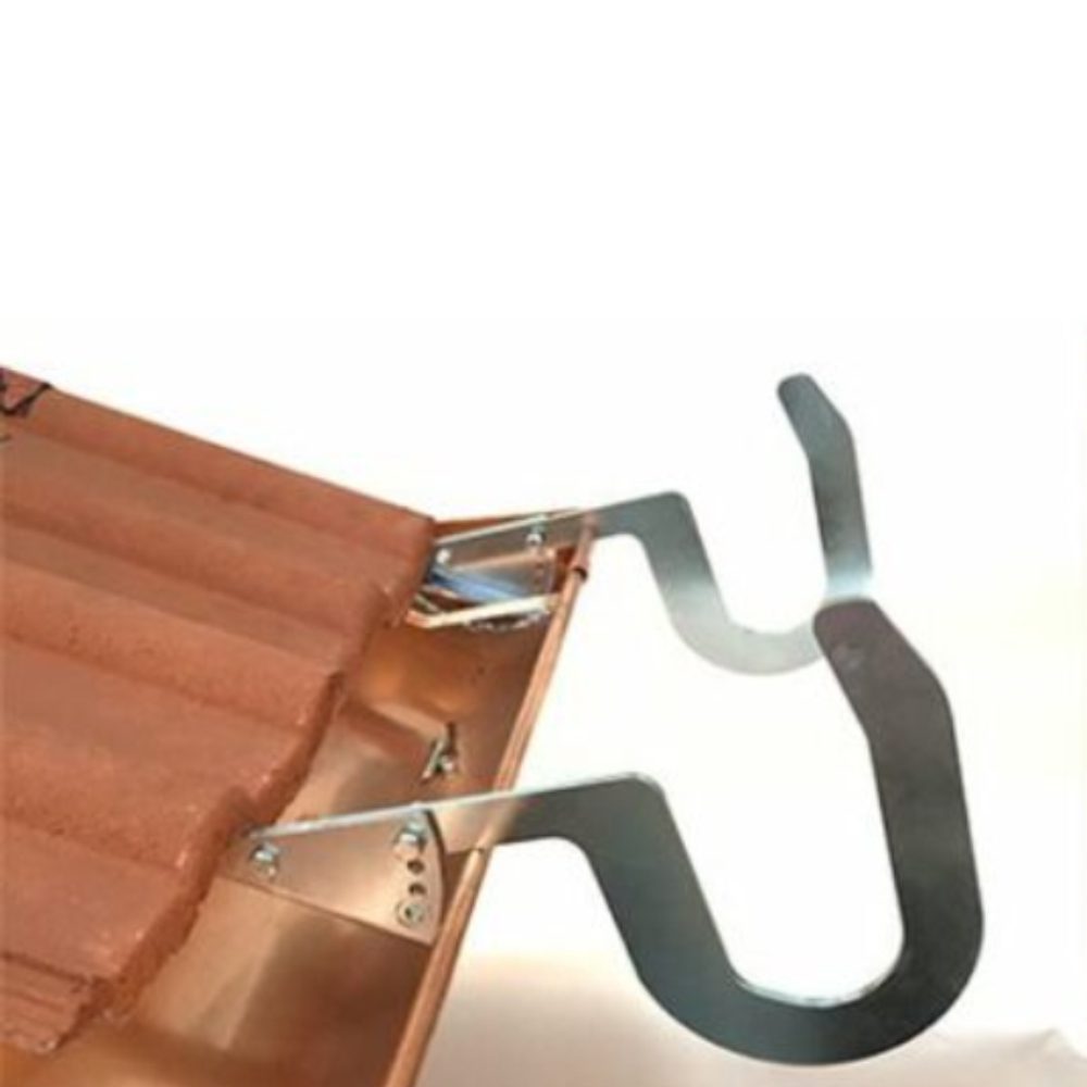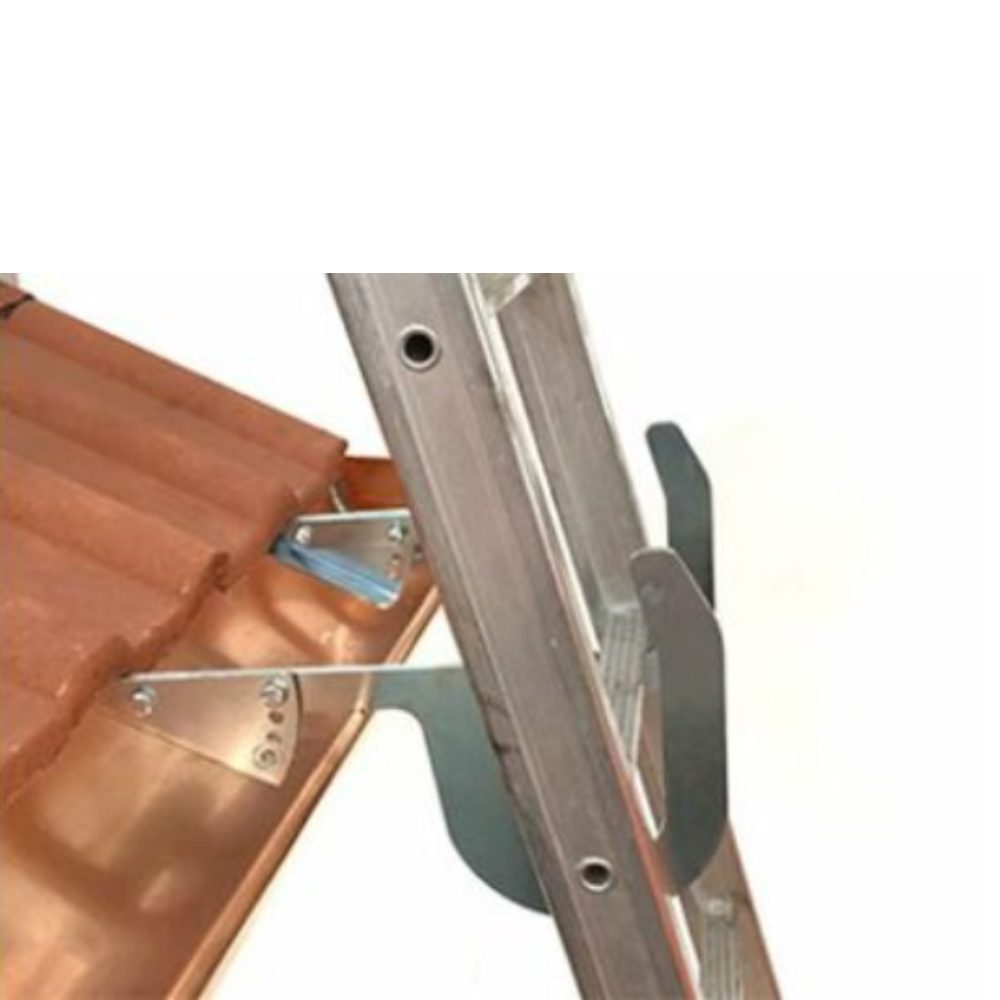 Questo gancio per scale è regolabile ed è adatto sia per tetti piani e che per quelli inclinati.