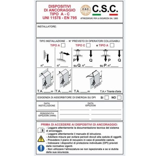 – Norma UNI 11578:2015. Dispositivi di ancoraggio destinati all’installazione permanente – Requisiti e metodi di prova.