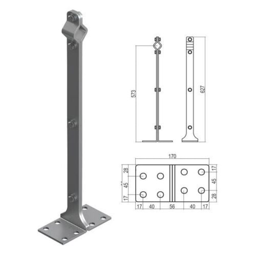 Torretta linea vita, palo intermedio disponibile in diverse altezze 40 e 60 cm e in due tipologie di materiali: inox o zincato