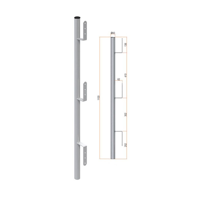 La struttura dell’asta, realizzata in acciaio zincato ad alta resistenza, consente il corretto fissaggio dei correnti e mantiene la protezione collettiva secondo la normativa UNI EN 13374 – Classe A, garantendo sicurezza durante lavori in quota su solai, terrazzi e coperture piane.