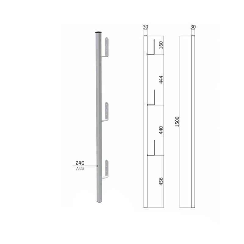 Il prodotto viene fornito come solo asta, ideale per la sostituzione di componenti esistenti o per l’integrazione di sistemi modulari già installati. In alternativa, il 24C può essere combinato in un kit completo pronto all’uso, comprendente gli accessori necessari per la realizzazione di un parapetto provvisorio conforme alle normative di sicurezza.