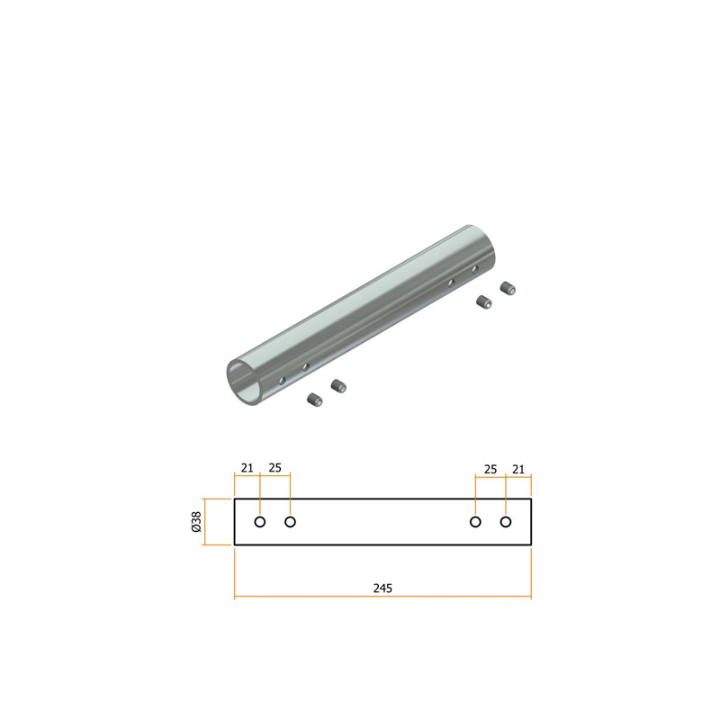 La Giunzione per parapetti permanenti ha una sezione tubolare diam.30 ed è ideale per collegare i terminali orizzontali dei parapetti permanenti.