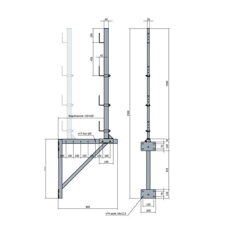 Funzione: Protezione anticaduta con possibilità di trasformazione in parapetto pedonabile